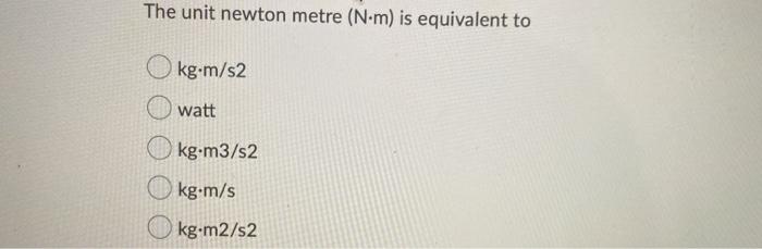 Solved The Unit Newton Metre Nm Is Equivalent To Kg M S2 Chegg Com